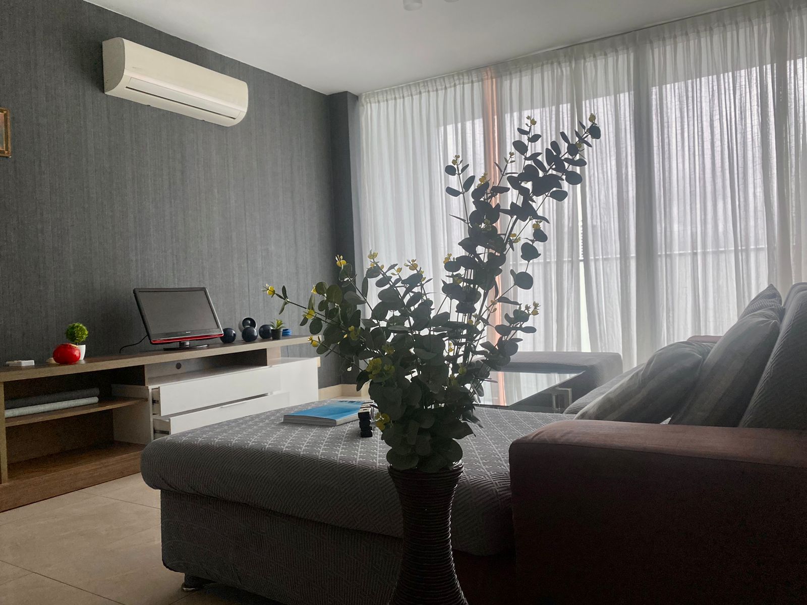 amoblado y con linea blanca y aires cortinas